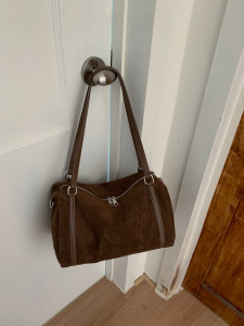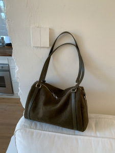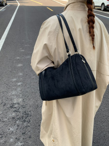 跨境j2025磨砂皮枕头包真皮大容量托特女包通勤波士顿包单肩斜挎