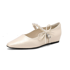 超仙温柔百搭珍珠蝴蝶结牛皮内增高玛丽珍2025秋方头低跟真皮单鞋