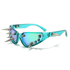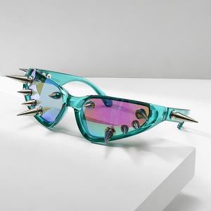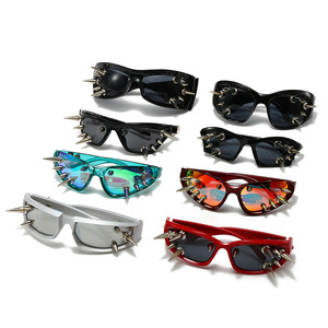 原创欧美新款Y2K辣妹风时尚猫眼铆钉机车朋克个性男女款太阳眼镜