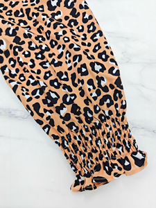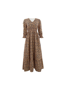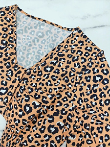 10825 跨境欧美亚马逊女士豹纹开叉印花长袖V领休闲度假连衣裙