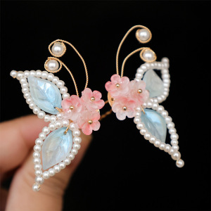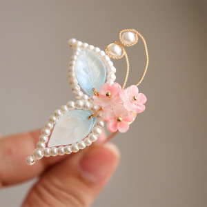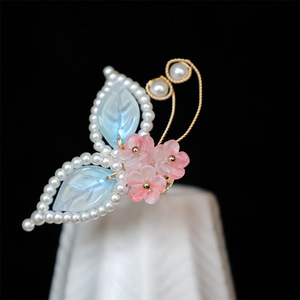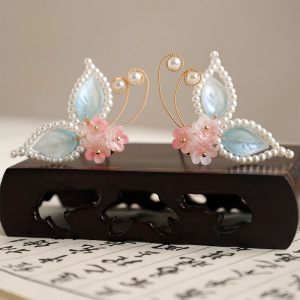 古风头饰琉璃蝴蝶发钗汉服点缀明制发饰发钗u钗甜美饰品儿童配饰