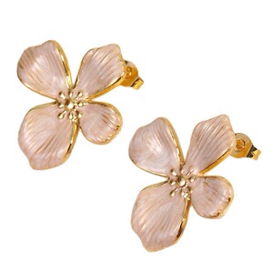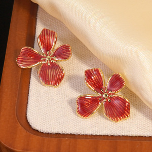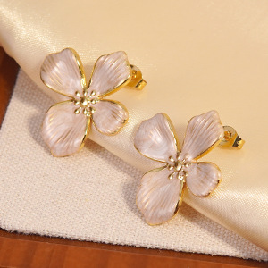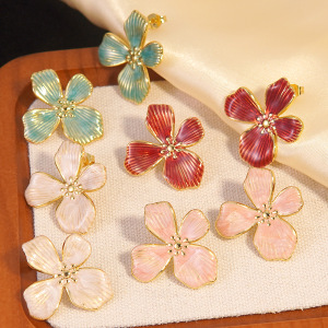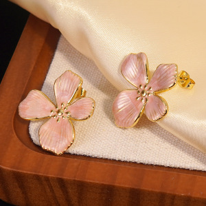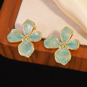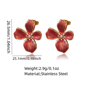 跨境爆款条纹滴油花朵耳环高级感时尚百搭花卉不锈钢耳环欧美耳饰