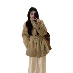 驼色呢子大衣女款2025新款秋冬高级感宽松小个子早春立领毛呢外套