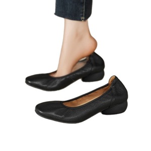 法式浅口低跟单鞋女爆款女鞋软底奶奶鞋通勤舒适久站不累脚小皮鞋