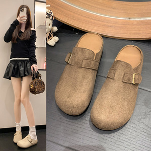 女王范复古包头厚底拖鞋女外穿2025秋季新款配裙子百搭半拖勃肯鞋