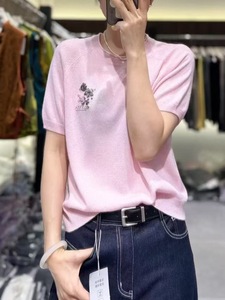 25年欧洲站早秋新款圆领花朵刺绣针织短袖羊毛针织衫色内搭
