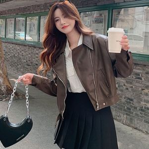咖色机车服皮衣外套女春秋2025新款小个子洋气pu皮夹克短款显瘦