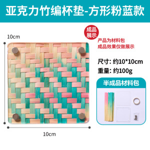 亚克力竹编杯垫-方形粉蓝款