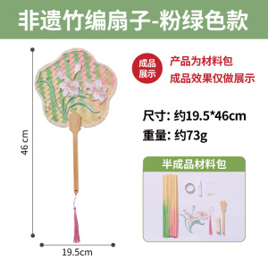 非遗竹编扇子-粉绿色款