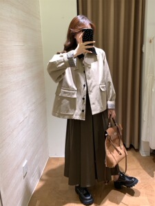 泽黛佳伊 复古巴恩风!廓形休闲灯芯绒拼接领短款风衣外套女秋