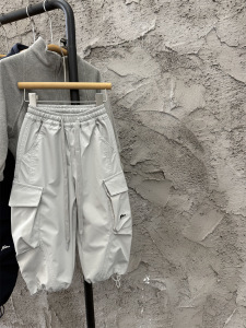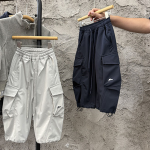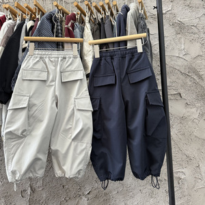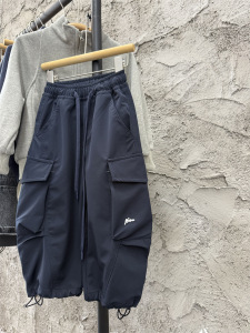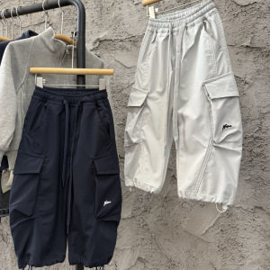 男童秋季美式复合大口袋工装裤帅气儿童抽绳刺绣字母滑板收脚长裤