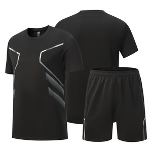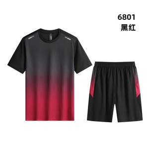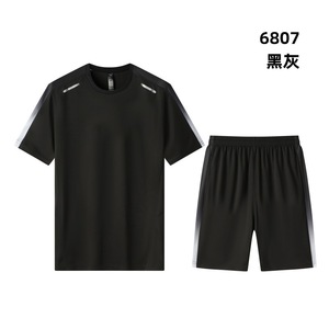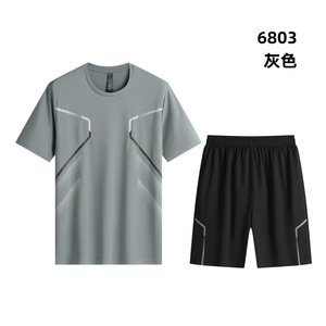 跑步服定制冰丝夏季男士速干衣健身服印logo宽松t恤短裤运动套装