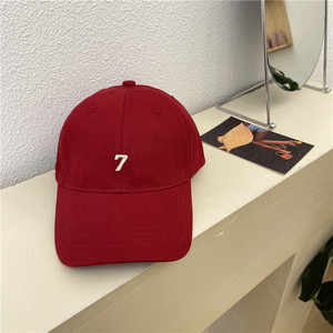 韩版简约刺绣数字7大头围粉色棒球帽女鸭舌帽宽帽檐显脸小帽子男