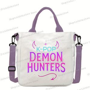 2025人气新款KPop恶魔猎人印花斜挎包女孩时尚休闲帆布包可爱卡通
