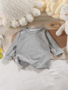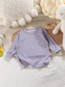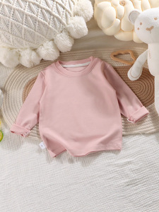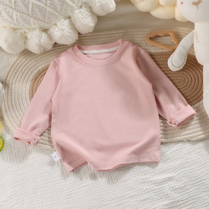 春秋季婴儿棉质打底衫男女宝宝纯色长袖上衣儿童休闲简约圆领T恤