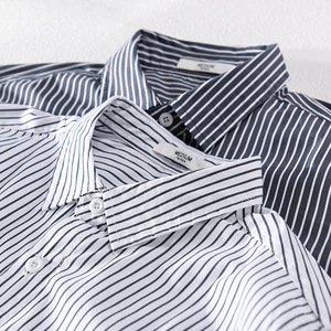 春秋季男装休闲条纹长袖衬衫文艺青年男衬衣日系简约打底上衣9620