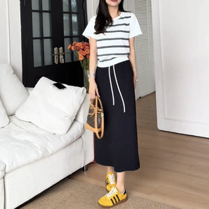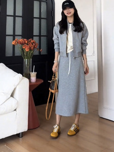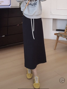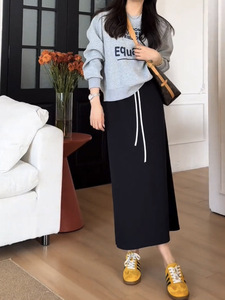2025春秋时尚半身裙卫衣裙中长小个子高腰显瘦百搭A字开叉直筒裙