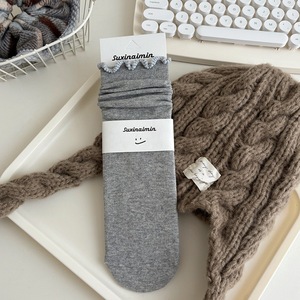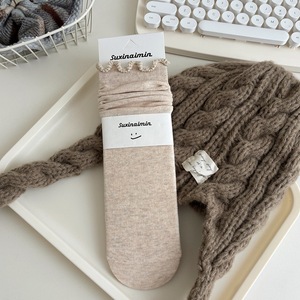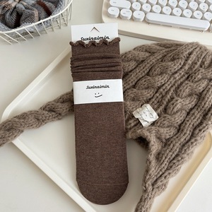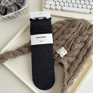 远润家袜子女秋冬花苞木耳边纯色月子袜棉百搭无骨中筒堆堆袜