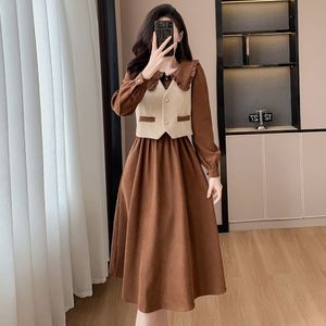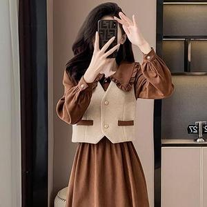 2025秋冬新款两件套复古法式气质显瘦洋气马甲长袖连衣裙时尚套装