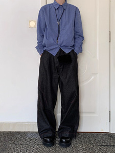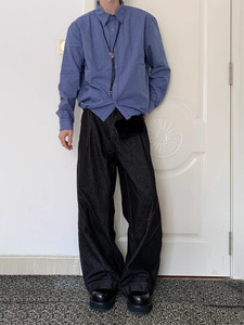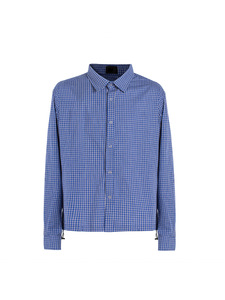 【CSMY】Xanvas皇家蓝色格纹抽绳长袖衬衫miu系秋冬百搭外套