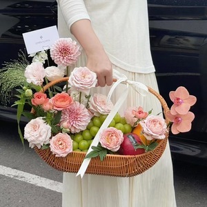 纯色水果篮法式田园风手提篮简约时尚野餐轻食篮子礼品藤篮