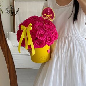 七夕新款鲜花抱抱桶磨砂肤感花束桶圆形马卡龙色网红鲜花包装资材