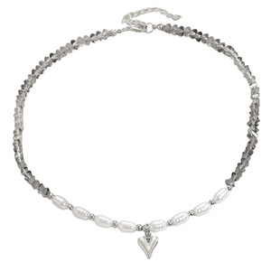 简约不规则CCB碎石珍珠拼接项链女甜酷辣妹高级感爱心锁骨链配饰