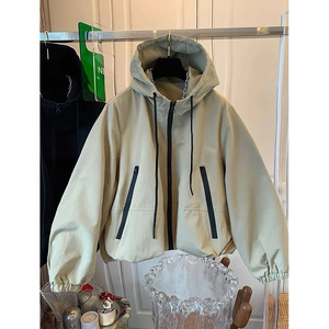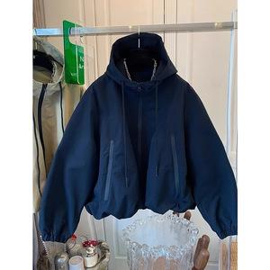 高级感休闲运动风冲锋衣连帽宽松短外套2025新款小个子上衣A6110