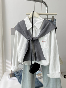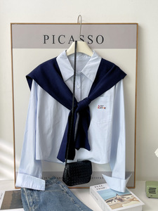 法式纯棉刺绣衬衫女秋季气质别致衬衣叠穿披肩外套上衣两件套6165
