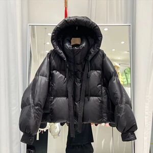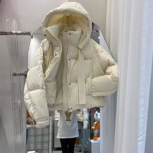 2025冬反季新款棉服女超短款连帽加厚宽松小个子飘带棉衣外套