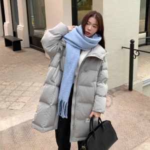 2025年冬季韩版长款连帽过膝羽绒服女宽松加厚简约白鸭绒保暖外套