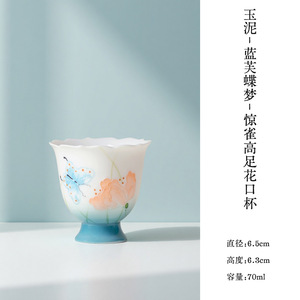 玉泥-蓝芙蝶梦-惊雀高足花口茶杯