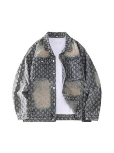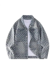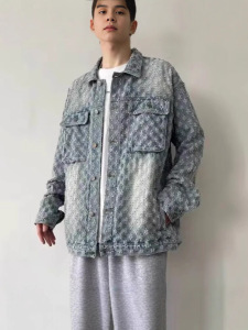 潮牌美式高街时尚复古做旧水洗提花牛仔衣外套春秋季夹克