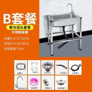 加厚不锈钢落地水槽厨房洗碗槽家用单槽带支架一体商用洗菜盆水池