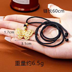 新中式越南沙金项链复古镂空镶钻蝴蝶吊坠精致久不掉色配饰品批发