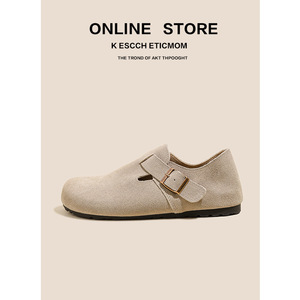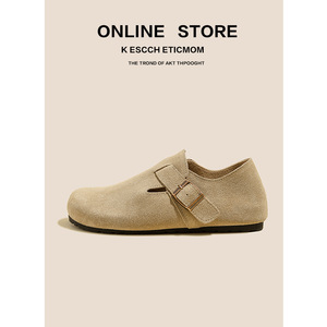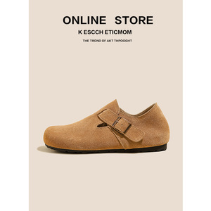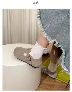 全真皮勃肯鞋女外穿春秋新款厚底内增高全包一脚蹬丑萌博肯鞋单鞋