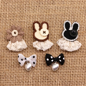 布艺蝴蝶结纽扣兔耳朵布贴配饰diy饰品儿童袜裤帽服装辅料配件
