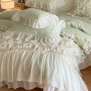 轻奢法式玫瑰水洗棉四件套床上韩版公主风蕾丝花边被套床单款四季