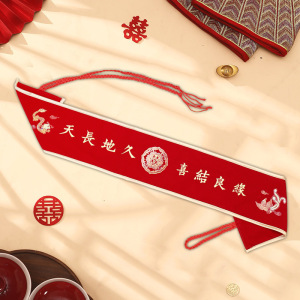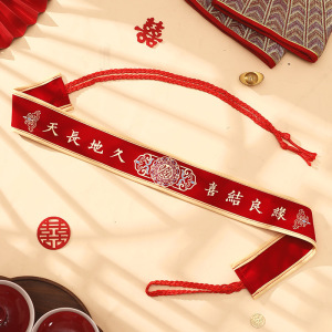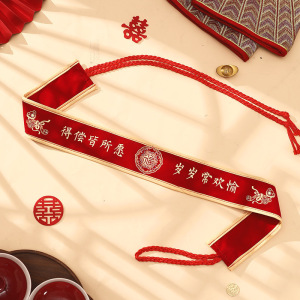 高档绒面结婚婚礼新郎新娘红色绒布腰缠万贯新人压钱红腰带批发