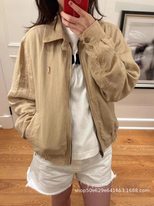 美式复古拉夫小马刺绣亚麻短外套女薄款翻领RL同款老干部夹克衫