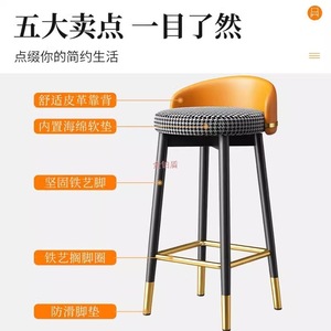 轻奢吧椅高脚凳岛台椅子吧台椅现代简约家用靠背椅前台收银台吧凳