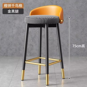 【黑金腿】橙色千鸟格-高65CM无靠背出口品质