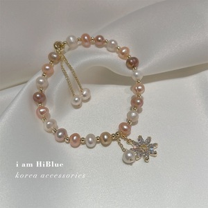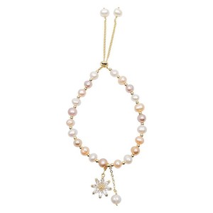 抖音淡水珍珠夏日水晶锆石小雏菊手链抽拉式可调节手链甜美淑女风