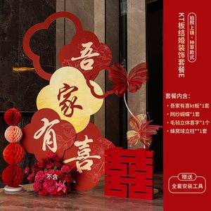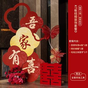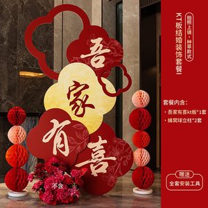 酒店婚房布置套装kt板迎宾牌男方客厅女方卧室结婚装饰晨袍背景墙