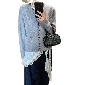 秋冬新款撞色圆领毛衣开衫外套宽松百搭慵懒风减龄针织衫上衣潮