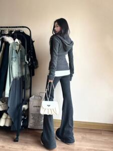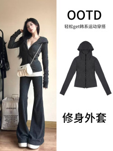 灰色秋季套装女款2025新款修身收腰韩系连帽入秋装搭配一整套穿搭