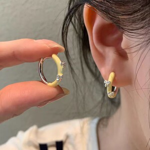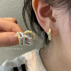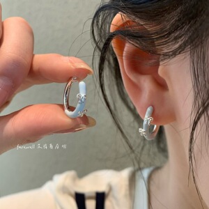蝴蝶结圆形滴油耳扣小清新甜美时尚百搭耳环精致设计感小众耳饰女