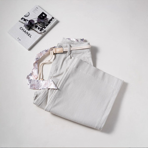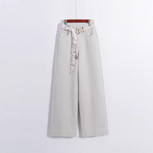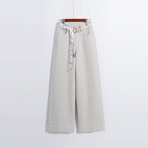 「知性优雅」轻奢感2025早秋新款白色牛仔阔腿裤设计感腰带6102
