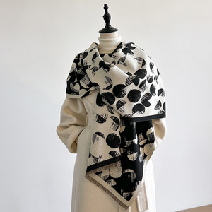 欧美高档涂鸦圆形围巾男女冬季百搭韩版披肩外搭仿羊绒保暖围脖