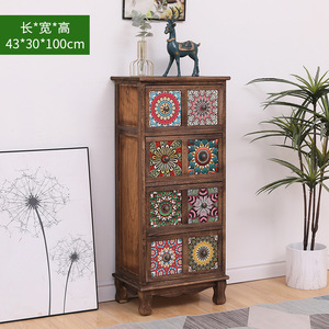 美式实木复古储物柜抽屉式收纳柜客厅多层置物柜卧室斗柜阳台柜子